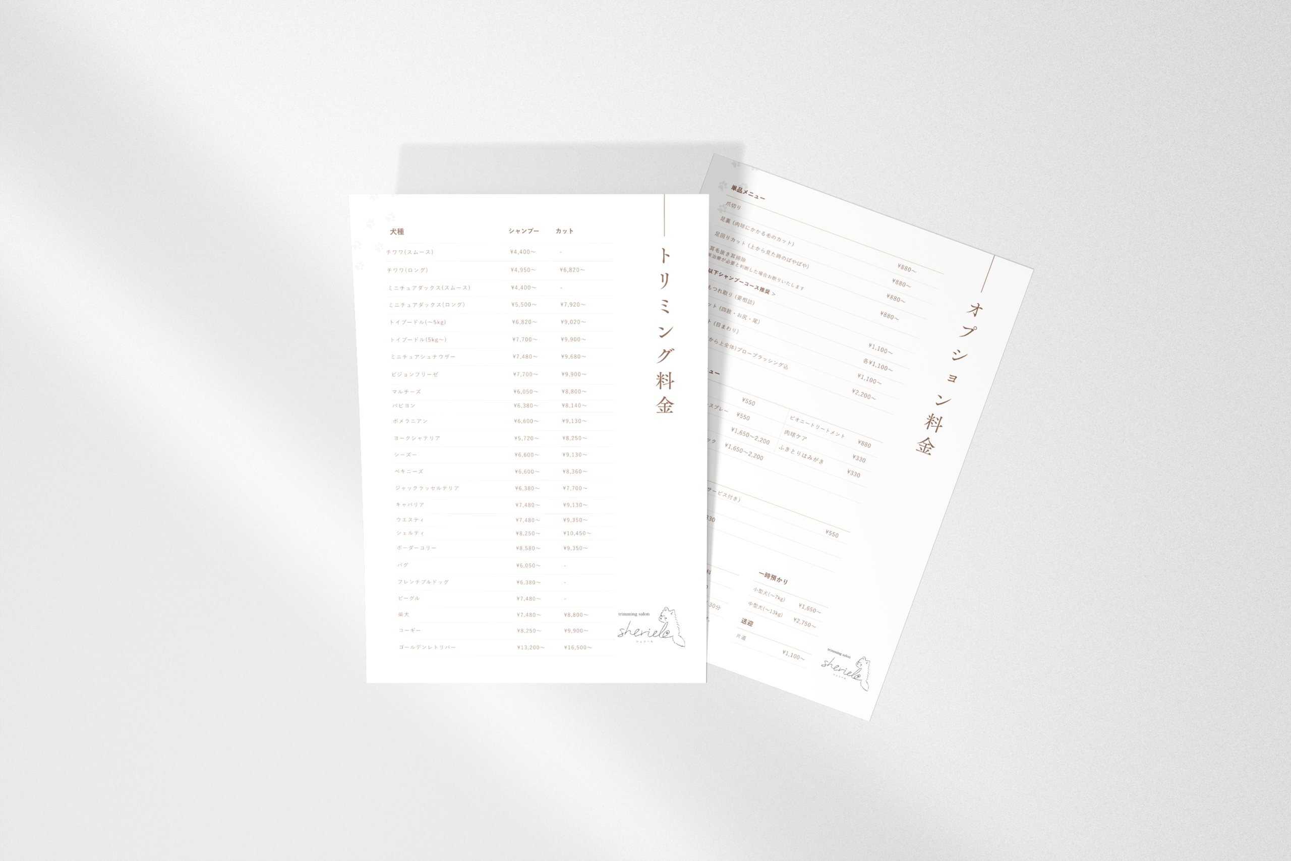 シェリール様の優しい世界観はそのままに、より見やすく、分かりやすいシンプルなデザインに仕上げました。掲載犬種が多いため文字はやや小さめですが、印刷してご利用いただくことを前提に、すべての犬種を掲載できるよう調整しています。
